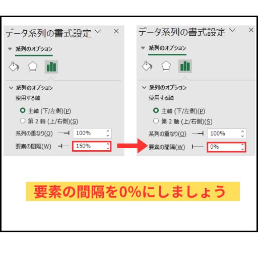 赤いグラフ要素を選択して、データ系列の書式設定を開きます。