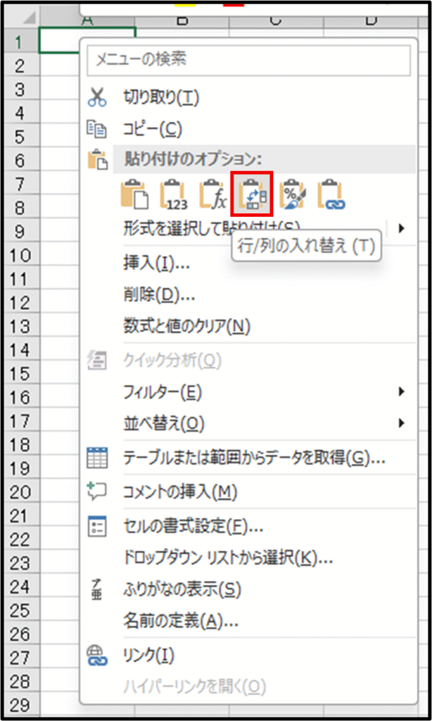 - 新しいシートに行/列を入れ替えて貼り付けます
