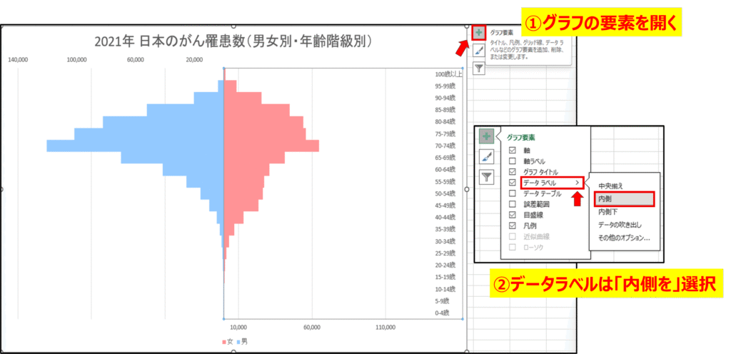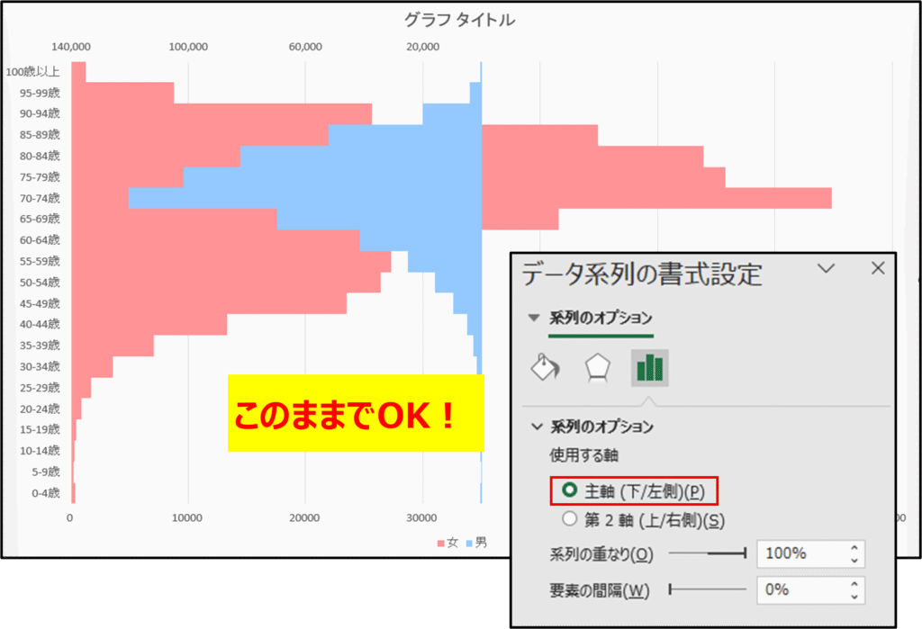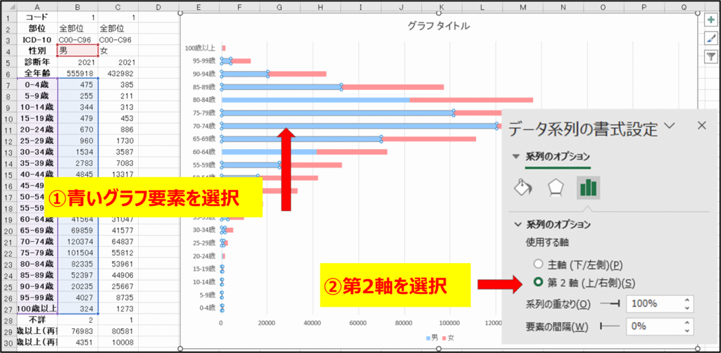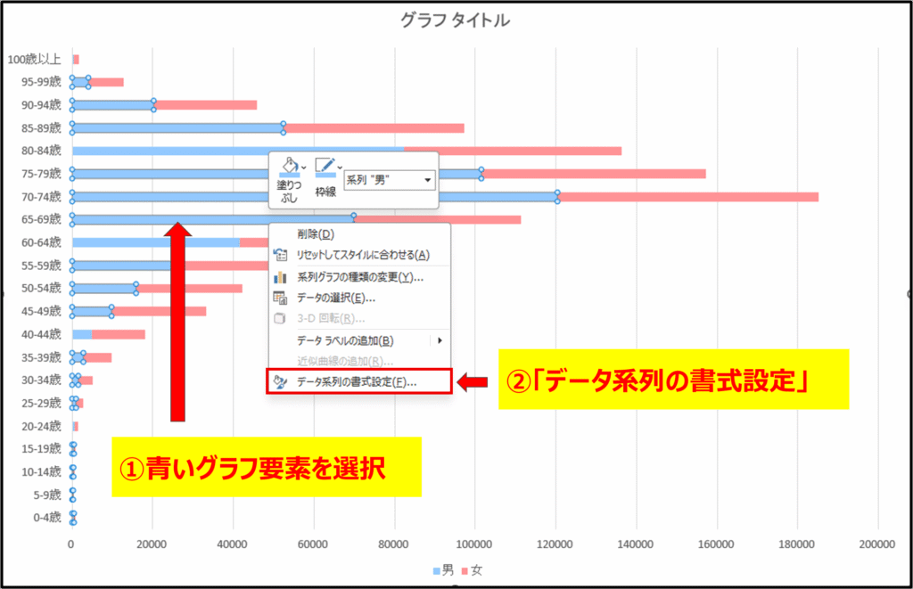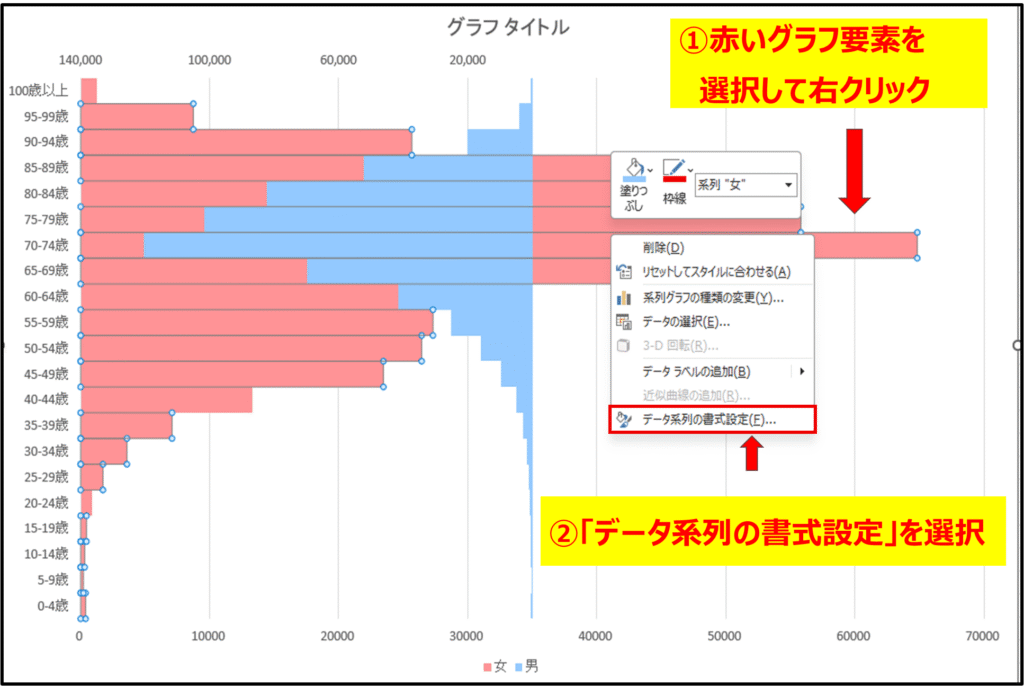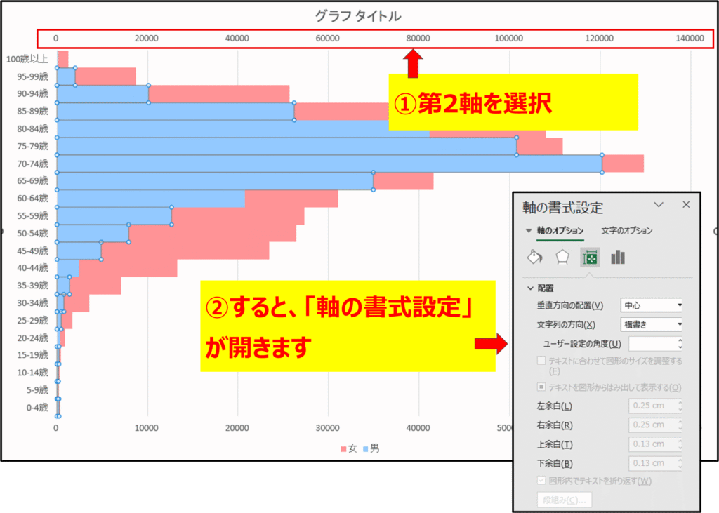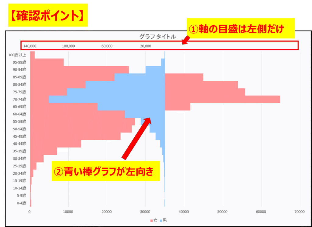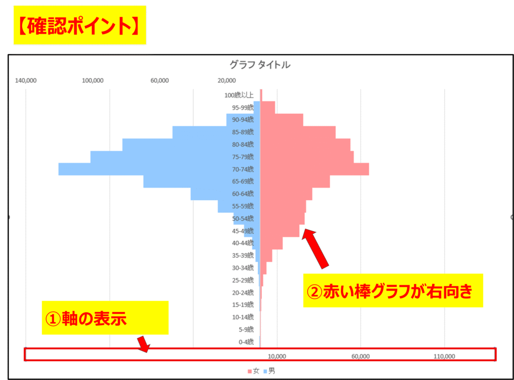 【2. グラフをつくる】人口ピラミッドを作成しましょう