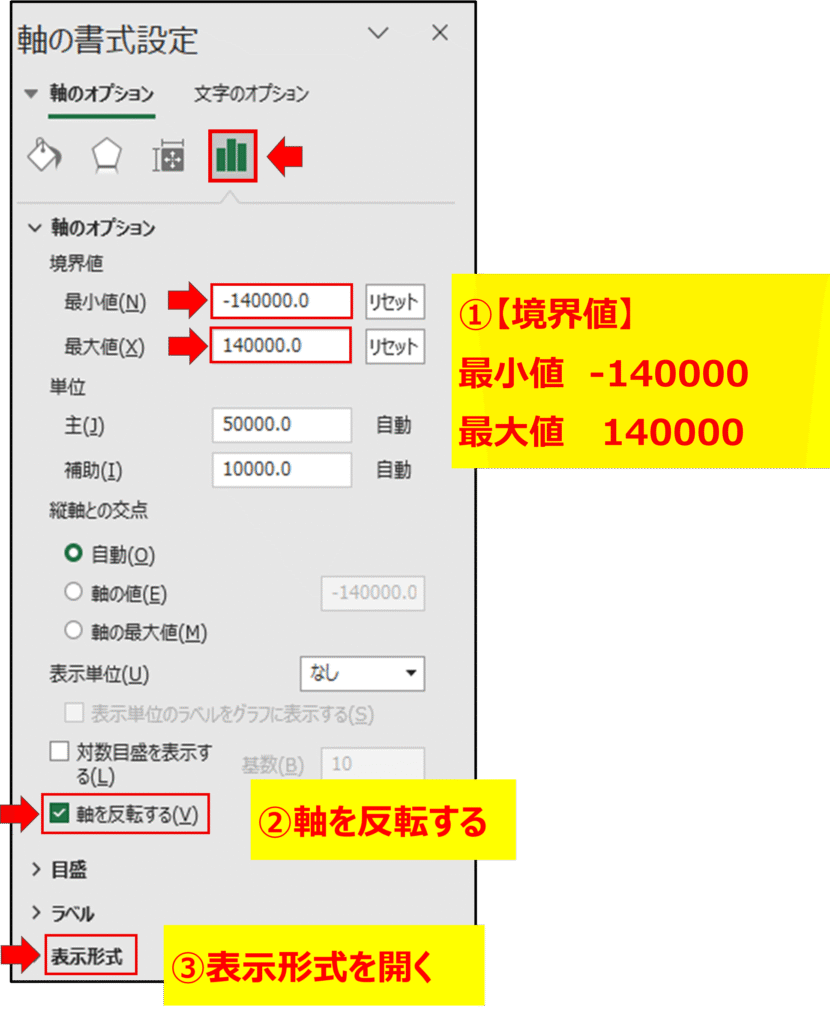 これから青い棒グラフを左向きにして、左右対称に整えていきます。
