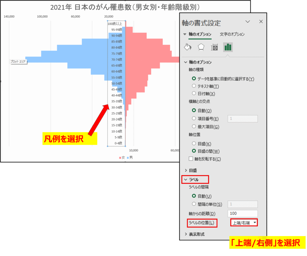 グラフと同じように左に男性、右に女性が見やすいですよね。