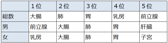 がん罹患数の順位を確認するときによく使いますので、しっかり覚えておきましょう。