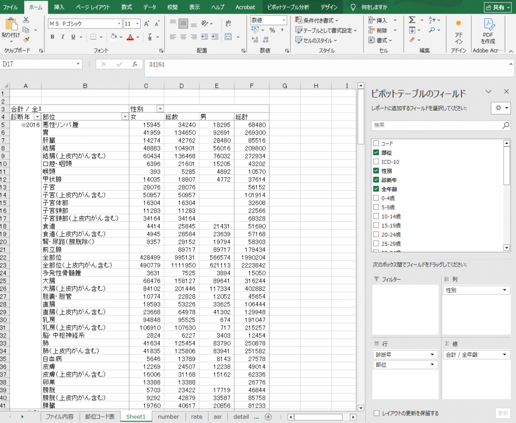 3.3 ピボットテーブルでがん統計を加工してみましょう
