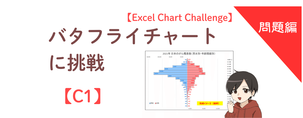 答え合わせは、Excel Chart Challenge|【C2】バタフライチャートの作り方(解答編) でやさしく解説していきます。