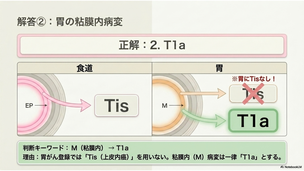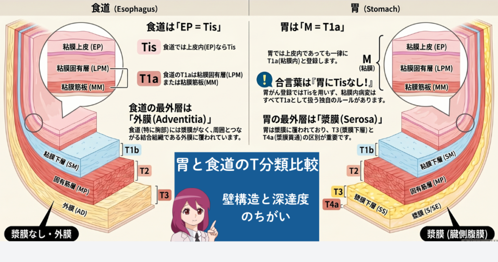 食道では「EP=Tis」「LPM・MM=T1a」ですが、