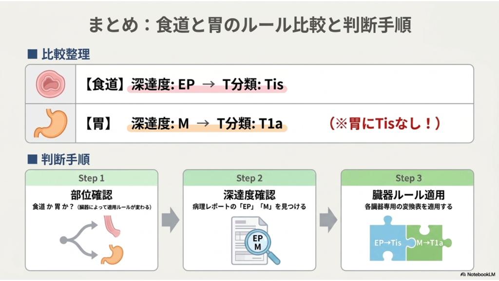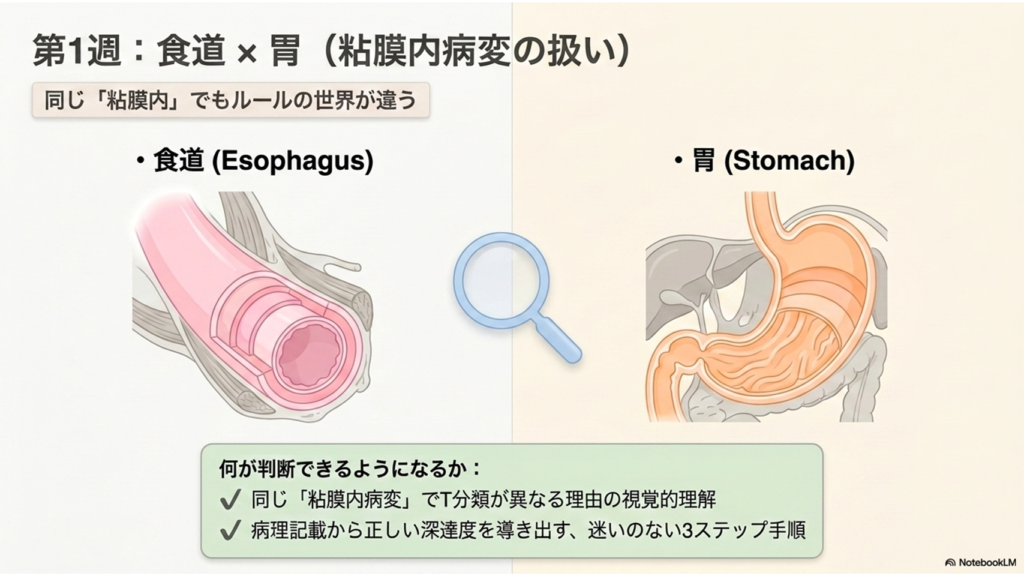 消化器シリーズ第1弾、胃と食道のT分類の違いを比較したアイキャッチ画像