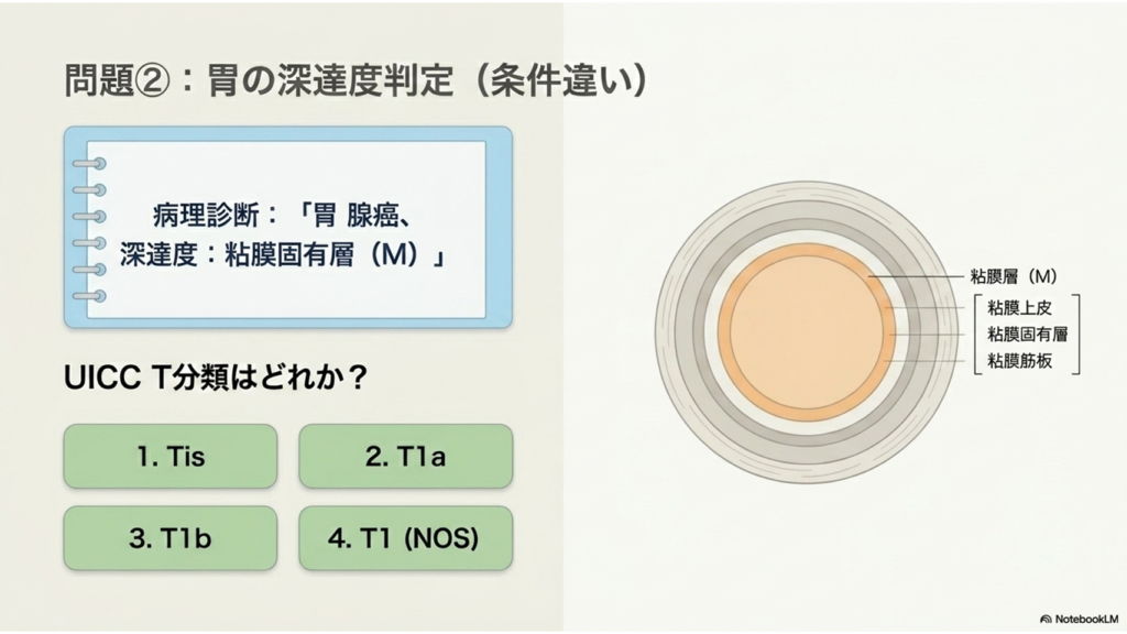 胃では上皮内であっても、粘膜内病変はまとめて「M=T1a」として扱います。